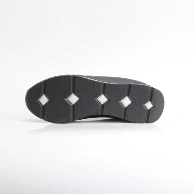 زیرهی کفش از پلیاورتان (PU) ساخته شده که بهخاطر سبکی، انعطافپذیری و خاصیت ضدلغزش، یکی از بهترین متریالها برای کفشهای روزمره بهحساب میآید. طراحی آجدار زیره باعث چسبندگی بهتر به سطوح و جلوگیری از سر خوردن میشود.